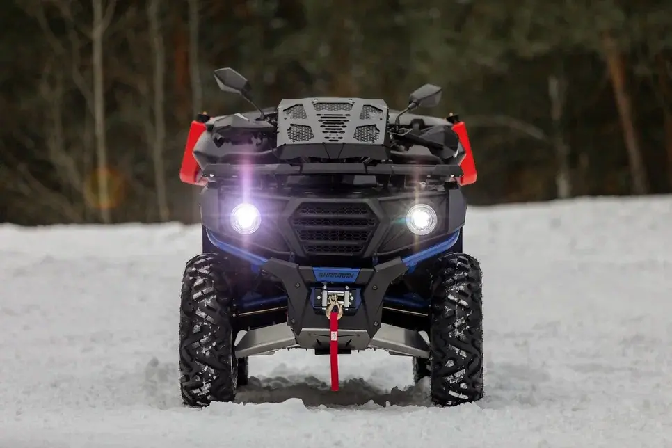 Лебёдка на 3500 lbs (более 1500 кг) идёт в комплекте, с управлением на руле и обеспечивает большие возможности на непроходимых дорогах.