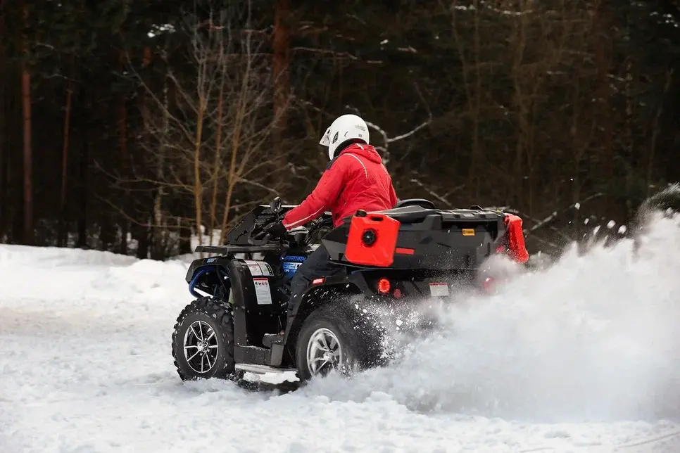 Система полного привода позволяет райдеру выбирать между двумя режимами, 2WD и AWD. В первом случае крутящий момент передаётся исключительно на заднюю ось. Этот способ хорошо показывает себя на твёрдой, не слишком вязкой поверхности. В случае пробуксовки колёс задней оси, имеет смысл подключить переднюю ось. Этот способ позволит выбраться из самой топкой и вязкой грязи.