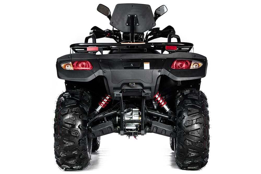 Светодиодные габаритные огни, а также сигнал заднего хода и поворотники, центральная фара, всё это говорит о возможности эксплуатации в городских условия. Максимальная комплектация квадроцикла Sharmax Hector Long 600: литые диски, лебёдка, защита рук, зеркала, фаркоп, светодиодные огни.