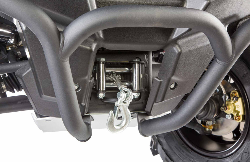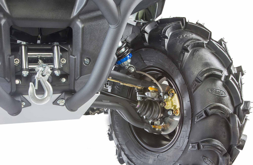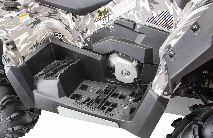 Квадрик оснащен двигателем объемом 800 куб. см. и мощностью 67 л.с., который обеспечивает высокую скорость. Двигатель гарантирует отличную производительность и способность преодолевать крутые склоны и труднопроходимые участки, что делает его идеальным для активного отдыха на природе.