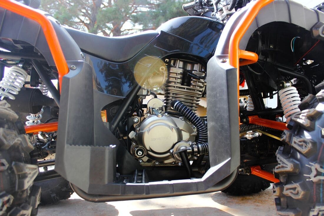 Квадрик оснащен мощным 4-х тактным двигателем 28 л.с., объемом 350 кубов, который способен быстро вывести квадроцикл на максимальную скорость 95 км/ч, а также обеспечить достаточную производительность и динамичное управление. С объемом топливного бака в 9 литров квадроциклом можно беспрерывно пользоваться в течение 2-х часов при расходе топлива 5 литров на 100 км.