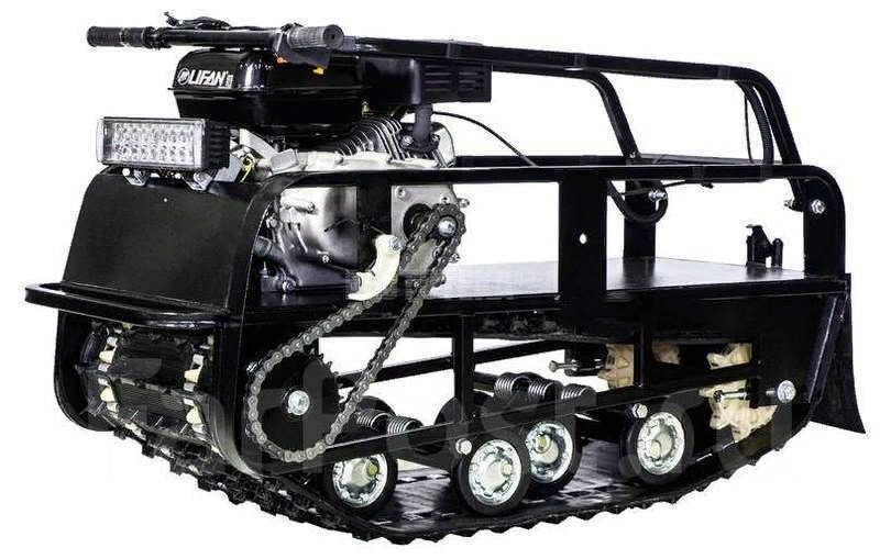 Мотобукс весит 60 кг, а размеры его составляют 120 см в длину, 60 см в ширину и 68 см в высоту. Модель оснащена гусеницей шириной 380 мм. Гусеница в сочетании с катковой подвеской способна проходить спокойно по льду и даже по территории без снега.