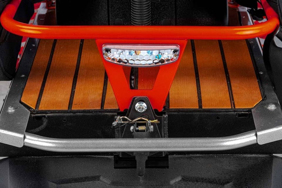 Подогрев ручек руля и курка газа, электронная многорежимная панель приборов, а также розетка на 12V делают снегоход простым и приятным в использовании. Безопасность эксплуатации машины обеспечивают надёжные дисковые тормоза, система аварийного глушения, а также система ручного запуска двигателя.