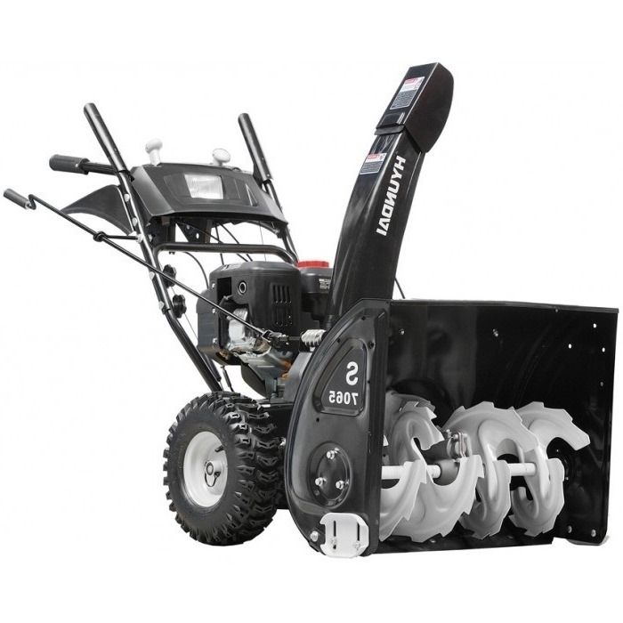 Эта модель снегоуборочной техники демонстрирует эффективность при работе с плотным и свежим снегом. Она также оснащена специальными рычагами на панели управления, которые позволяют регулировать высоту и направление выброса снега. Основные преимущества модели: