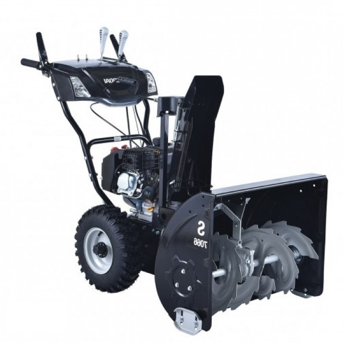 Эта модель снегоуборочной техники демонстрирует эффективность при работе с плотным и свежим снегом. Она также оснащена специальными рычагами на панели управления, которые позволяют регулировать высоту и направление выброса снега. Основные преимущества модели: