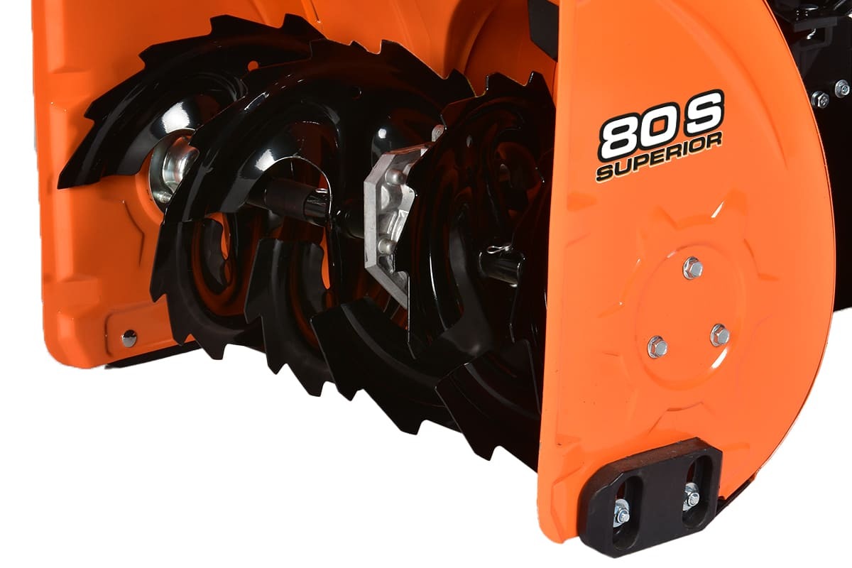 Возможность эффективно перерабатывать снег разных типов сложности связана с конструкторским решением сочетания высокой мощности (8,5 л. с.), небольшой ширины уборки (660 мм) и усиленным сцеплением 14-дюймовых безвоздушных шин Runflat. Небольшая ширина ковша даёт возможность эксплуатировать технику на любом приусадебном участке с узкими дорожками. Повышенная высота ковша даёт возможность применения этой техники при работе с более высоким снегом. Однако это же создаёт определённые ограничения в работе с лежалым снегом с элементами сухого фирна. Дефлектор из усиленного металла позволяет менять направление выброса снега на 190 градусов при помощи рукоятки на корпусе машины. Стальной шнек с добавлением хромомолибденового сплава позволяет эффективно справляться даже со слежавшимся снегом.