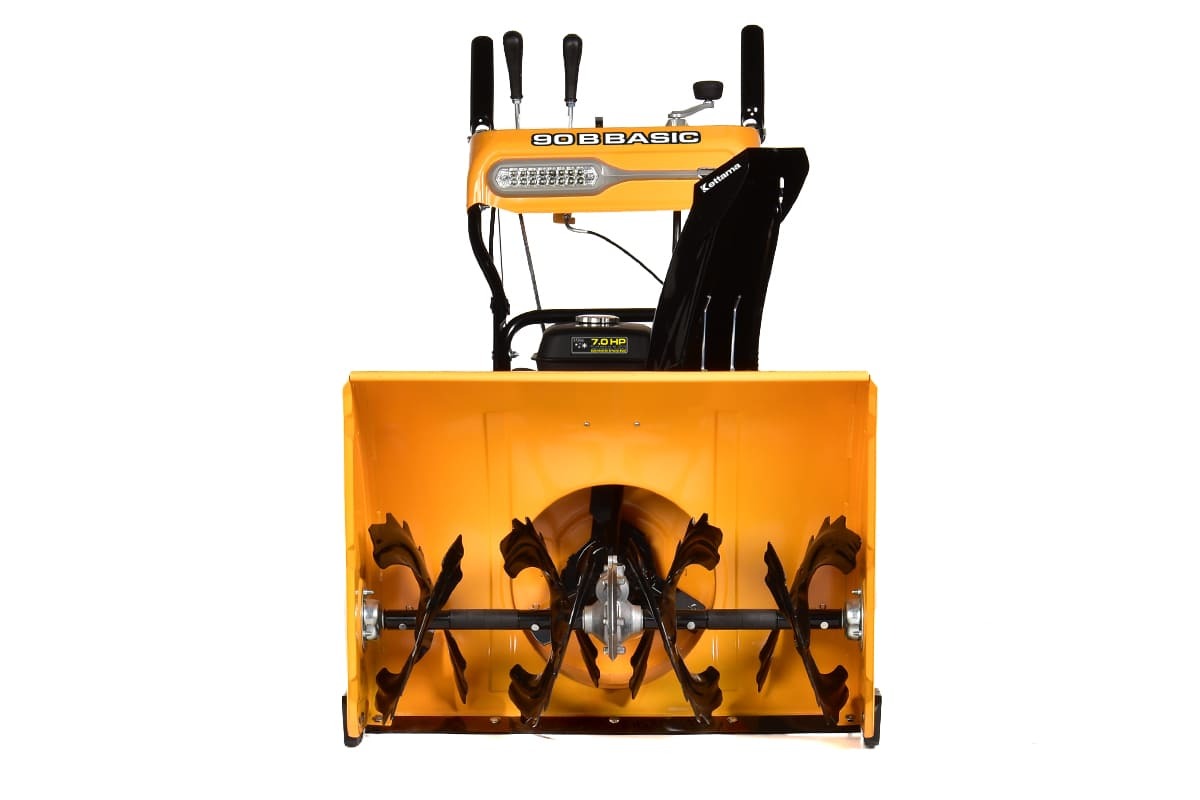 Kettama 90B — одна из самых популярных моделей в своём классе с управлением на панели оператора. 90B относится к линейке бытовых снегоуборщиков Basic, обладая всеми её достоинствами. При достаточно демократичной цене качество основных узлов остаётся на высоком уровне. Это касается рамы, редуктора, ДВС и трансмиссии. Снизить цену удалось благодаря оптимизации опций комфорта. То есть, эту модель максимально упростили, оставив только основные элементы, необходимые для качественной уборки снега. При этом всё управление вынесено на панель оператора.