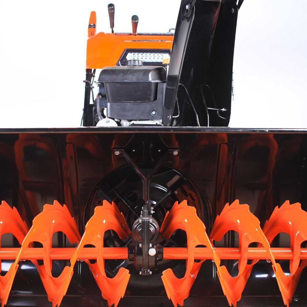 Самый мощный снегоуборщик с рекордной шириной захвата в 107см, позволяет очищать пешеходную дорожку за один проход, а проезд для легкового автомобиля всего за два прохода. Сдвоенные колеса обеспечат отличное сцепление с грунтом при максимальной глубине выпавшего снега. Функция "free hand control" позволяет разворачивать снегоуборщик практически на месте.